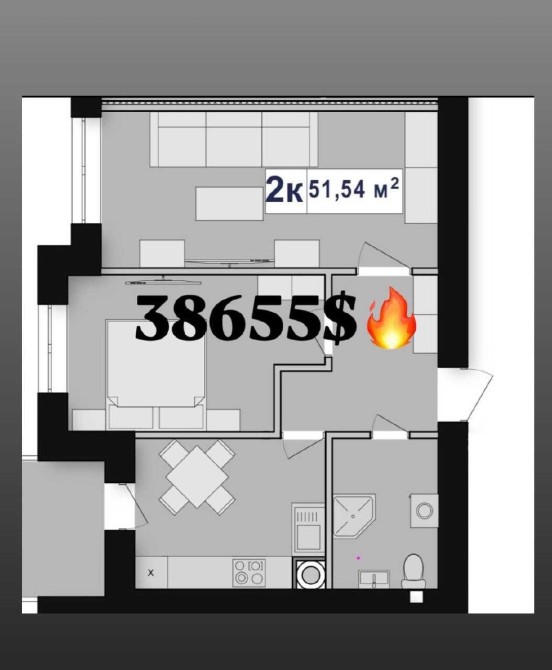 Площа: 51.54 м²