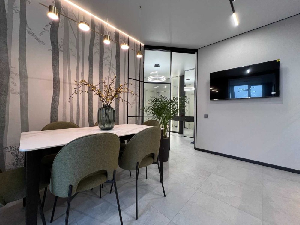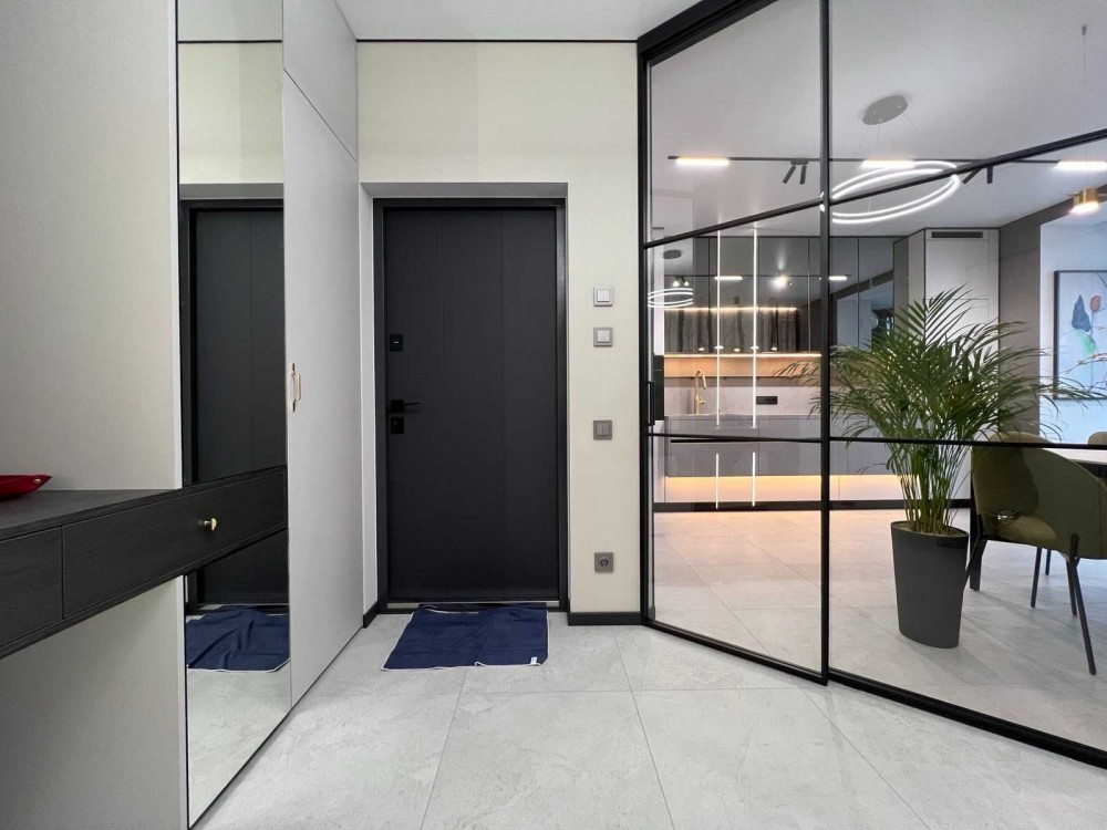 • Комфорт Кондиционер, Подогрев полов, Душевая кабина, Мебель на кухне, Гардероб, Панорамные окна, Сигнализация, Видеонаблюдение, Охраняемая территория, Гостевой паркинг, Лифт