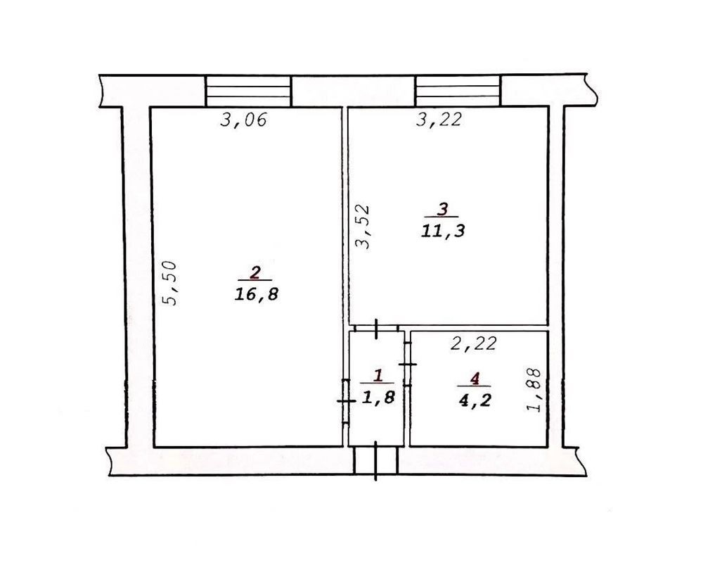 - 2 окремі кімнати (одна з зоною кухні), санвузол та коридор