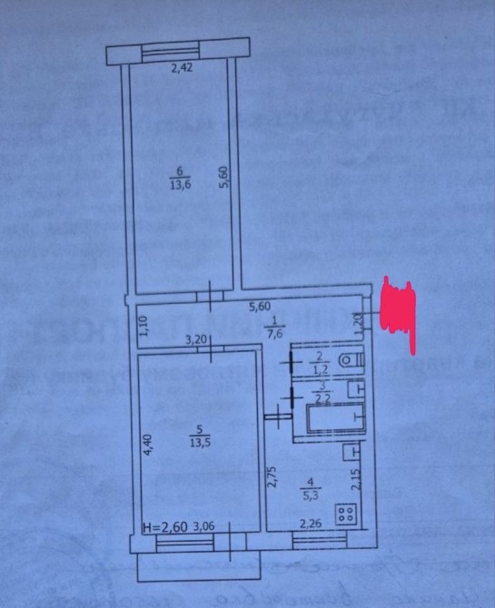 • Площадь кухни 6 м2
