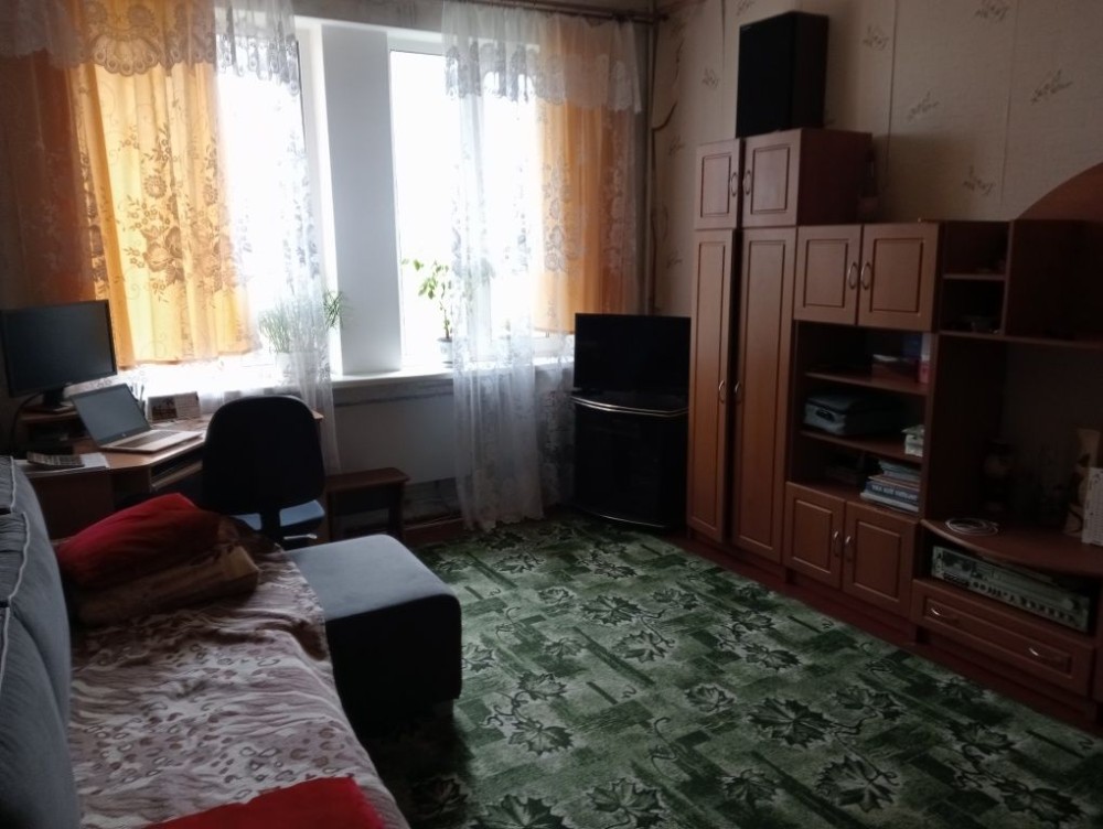 Квартира находится на втором этаже двухэтажного шлакоблочного дома. Комнаты раздельные, что удобно для семьи или проживания нескольких человек. Санузел также раздельный.