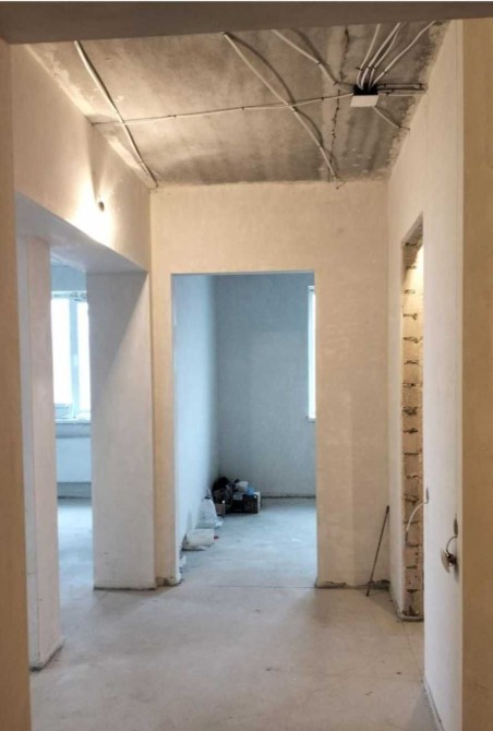В квартире выполнены черновые работы - стяжка пола, разводка электрики, разводка сантехники, штукатурка стен.
