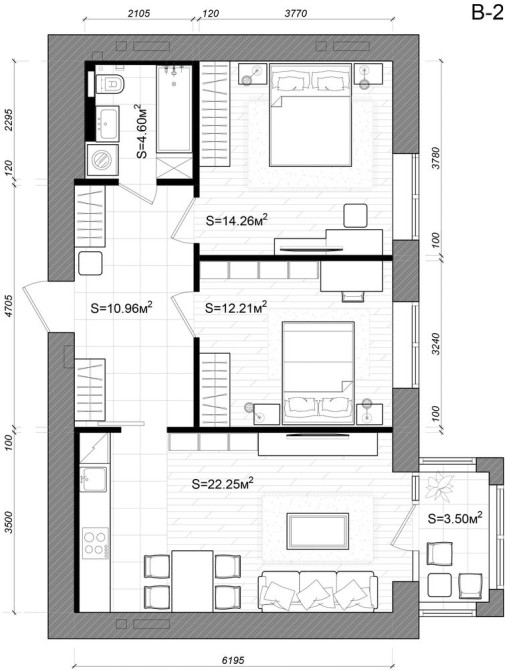 • Двухкомнатная