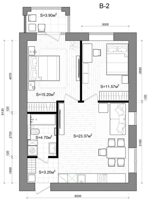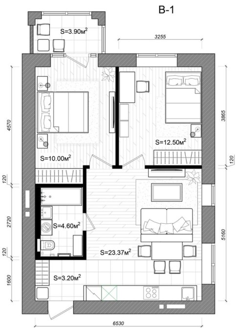 • Общая площадь 65 м2
