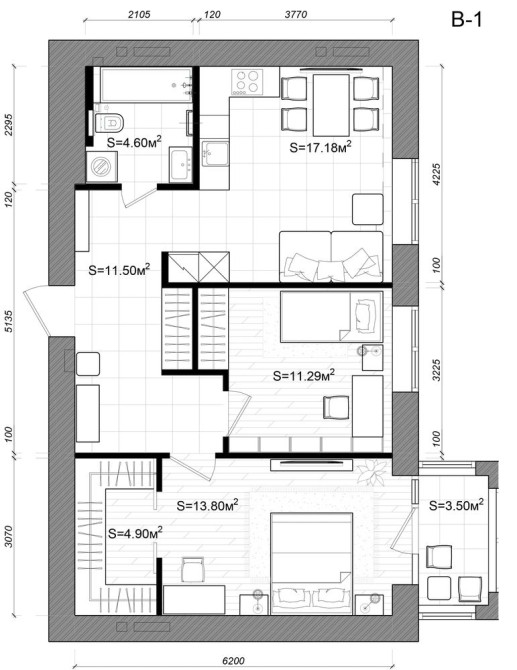 • Трехкомнатная