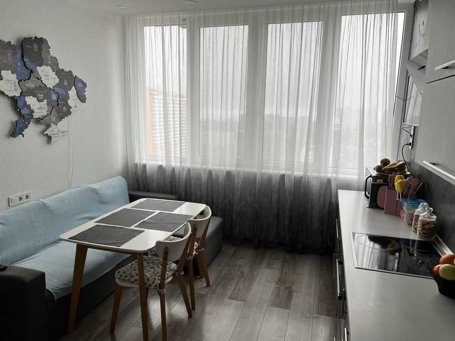 Продаж 2-к квартири вул. Авіаконструктора Антонова 2б. ЖК Sherwood. Планування: кухня-студія з лоджією, 2 спальні, 2 санвузли, гардероб. Панорамні вікна, високі стелі, сучасний євроремонт. Квартира повністю мебльована, з технікою. Комплекс бізнес-класу з генератором, укриттям, закритою територією та охороною. Є дитячі майданчики, зелені зони для відпочинку, підземний. 044 200 10 80