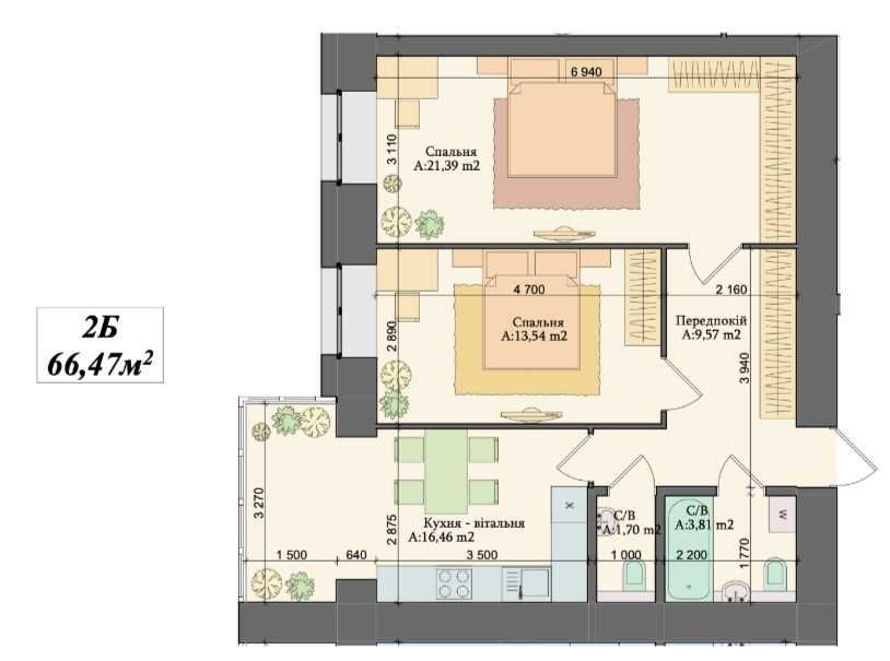 Площа- 66,5 м2