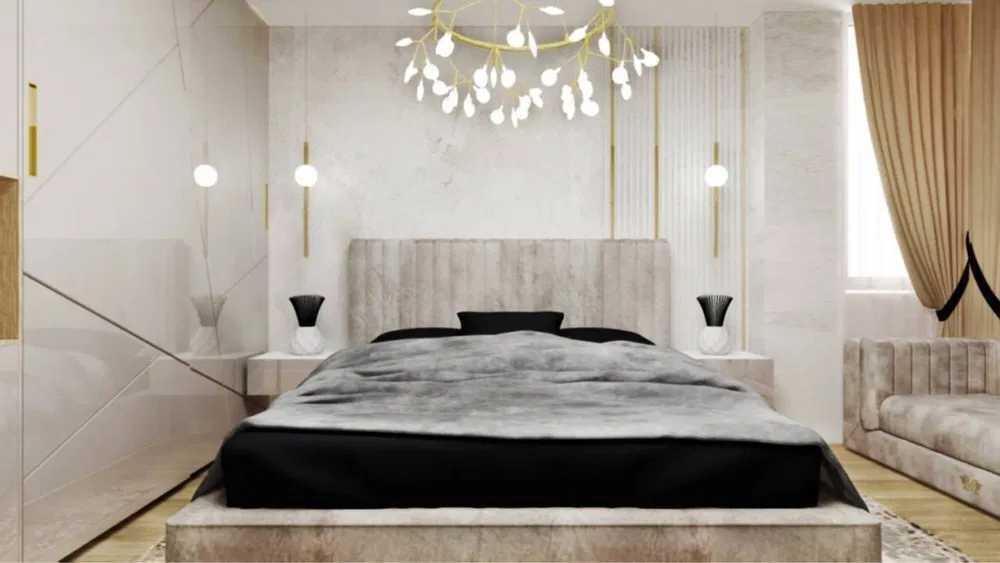 Формат: спальня, просторная кухня-гостиная, два санузла и возможность обустроить дополнительную спальню.