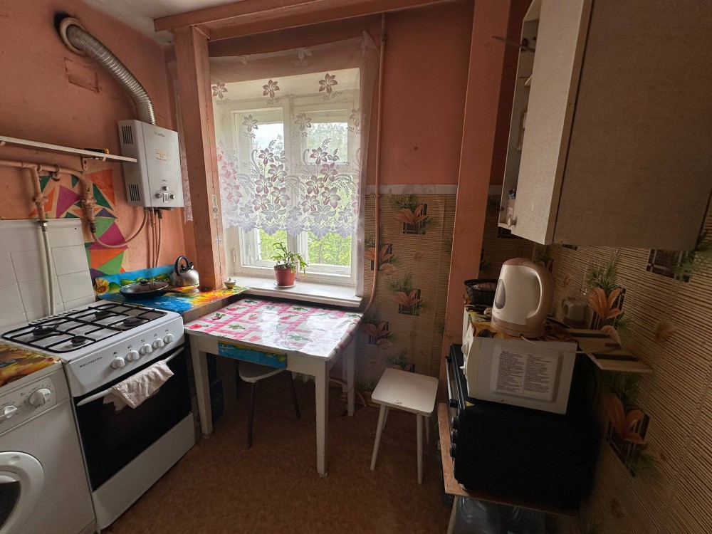 Квартира в житловому стані, 43/29/5,5 м2, кімнати прохідні, санвузол суміжний, газова колонка. Поверх 3/5, будинок цегляний. Балкон відремонтований, засклений м/п вікнами. Лічильники на світло, воду, газ.