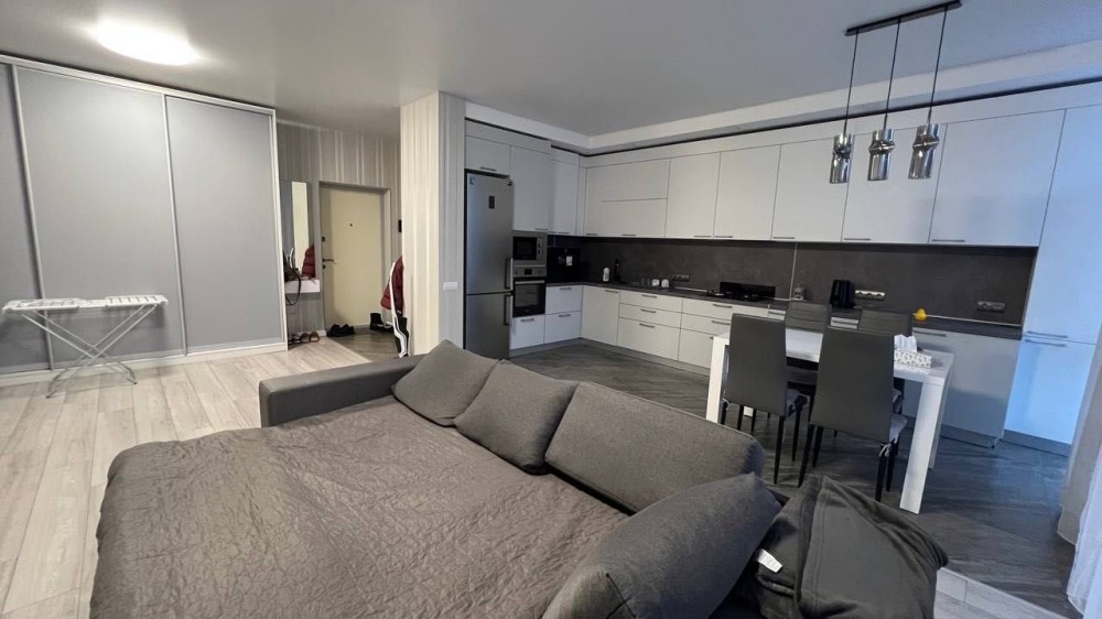 Площа квартири складає 67,5м2 (має велику простору кухню-вітальню, з додатковим спальним місцем. Є два балкони. Та розташована на 6 поверсі.
