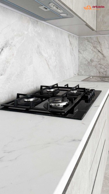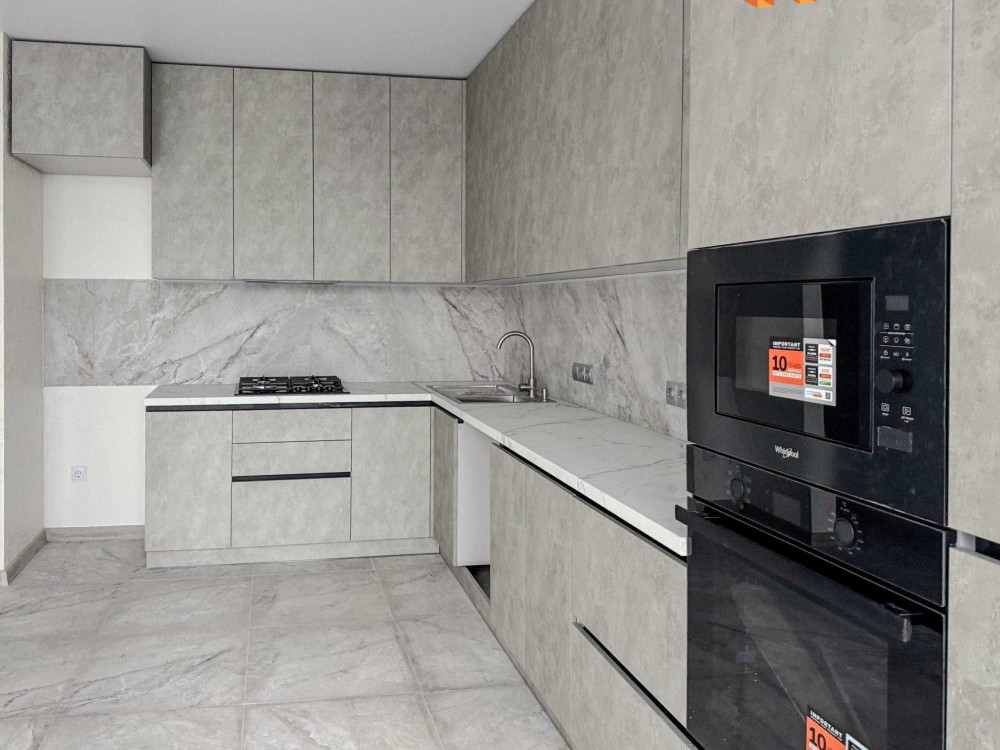 Виконано якісний, сучасний та продуманий до деталей ремонт. Кухня укомплектована вбудованою мікрохвильовою піччю та духовою шафою, встановлена газова варильна поверхня Whirlpool. Передбачено місце для посудомийної машини та холодильника.