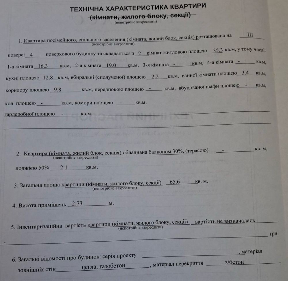 Загальна площа 65 квадратних метрів, житлова 35 квадратних метрів.