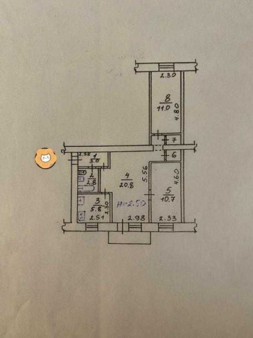 Загальна площа 56 м2, середній поверх 2/5, капітальний ремонт.