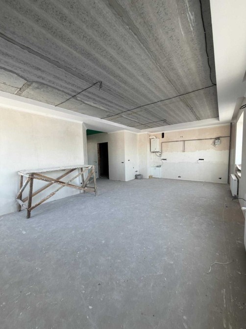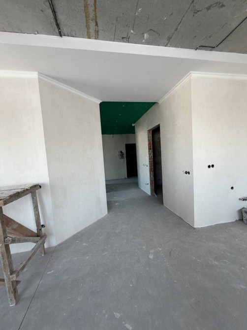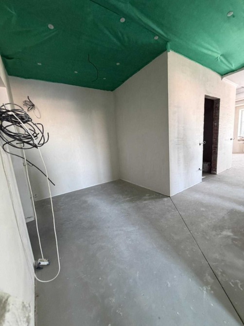 Стан квартири — під чистове оздоблення. За описом у картці, вже виконано основний комплекс чорнових робіт: зроблено теплу підлогу по периметру квартири, крім житлових кімнат, у санвузлі змонтовано інсталяцію та рушникосушарку, у кімнатах виконано звукоізоляцію стелі, стяжку, чорнову штукатурку та розводку електрики. Це дозволяє швидше перейти до фінального ремонту під себе.