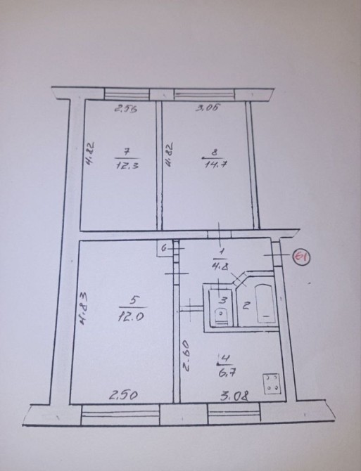 • Площадь кухни 6.7 м2