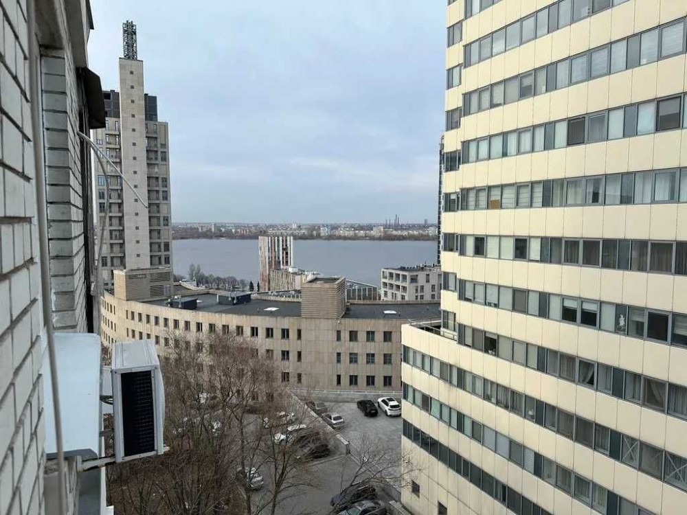 С окон открываются великолепные виды на город и Днепр. Просторная гостиная с выходом на балкон и открытой планировкой ,