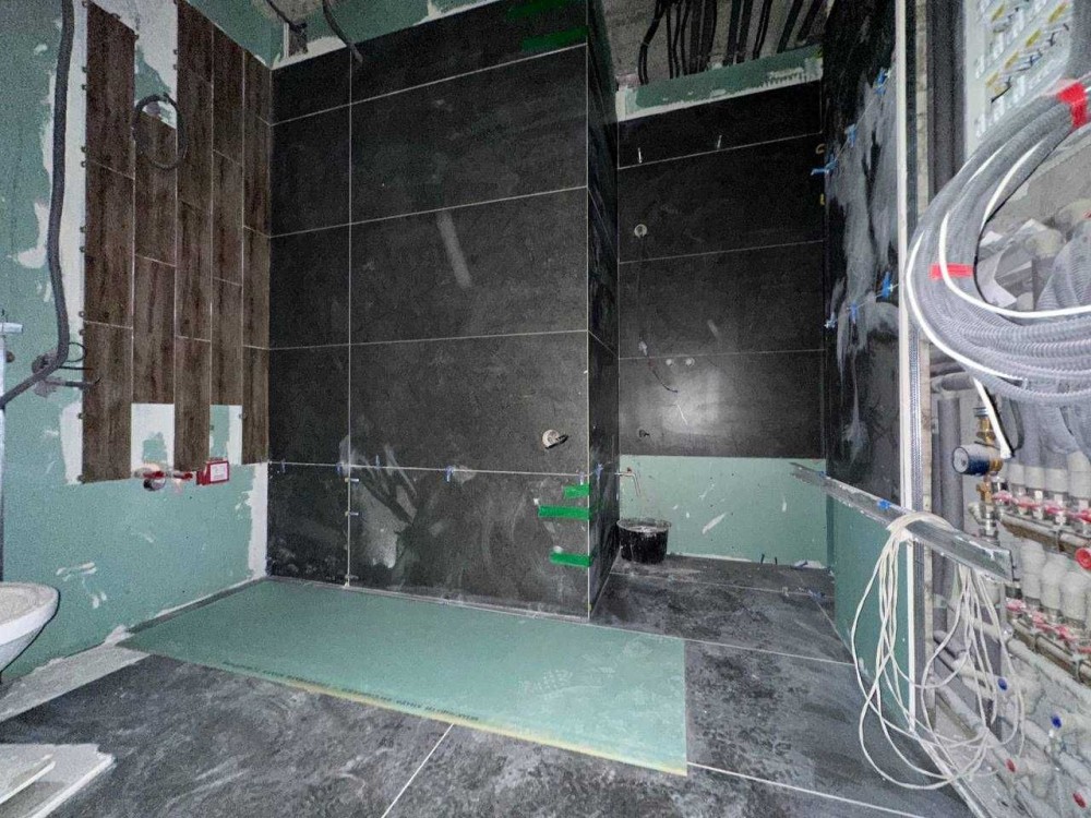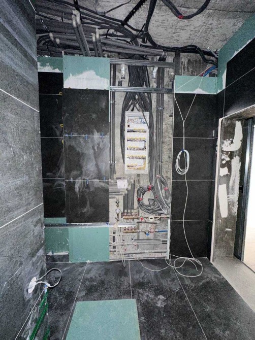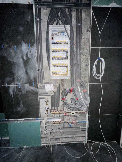 Выполнены работы : разводка всех коммуникаций по воде и отоплению, полностью разведены проводка, теплые полы в зоне кафеля, есть радиаторы отопления, разводка под три кондиционера мультизональная система CooperHunter в наличии, остаток кафеля для санузлов и коридора!