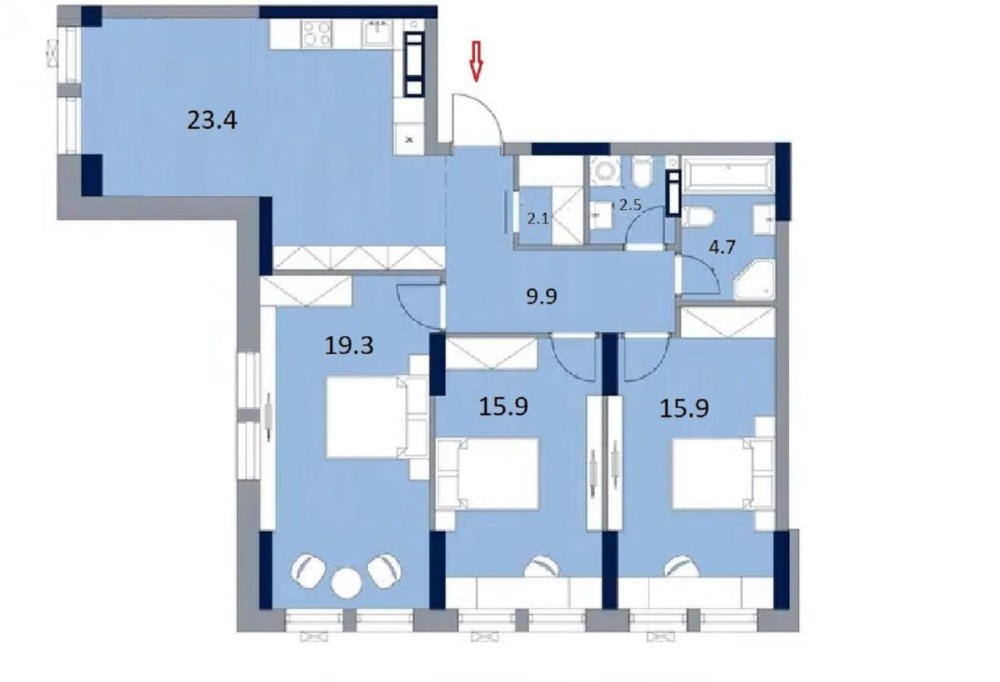 • Трехкомнатная