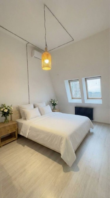 Простора дворівнева квартира на останньому поверсі сучасного будинку. Доступ на поверх здійснюється через кодовий замок, встановлено надійні броньовані вхідні двері. Загальна площа - 142 м².