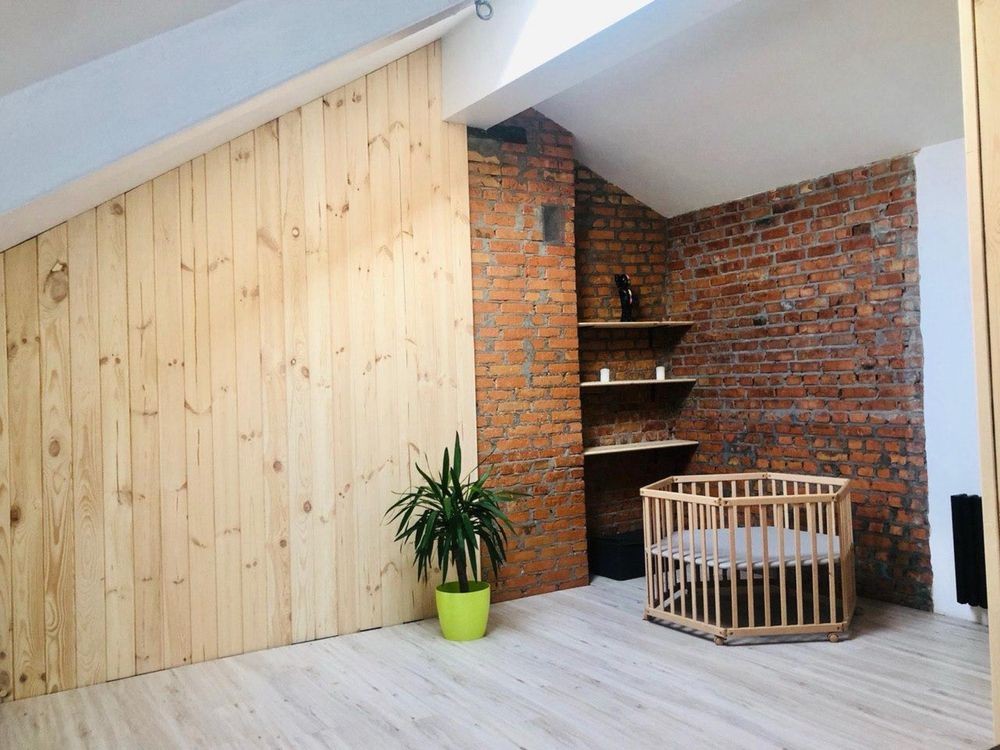 Другий рівень - відкрите простір площею близько 50 м² із власною ванною кімнатою та туалетом. Також є окрема гардеробна кімната орієнтовним розміром 1,5 х 5 м з продуманою системою зберігання. Завдяки вікнам Velux простір наповнений світлом що відкриває можливість встановлення каміна на другому рівні. Простір можна використовувати як ігрову зону, приватну спальню або окрему зону відпочинку.