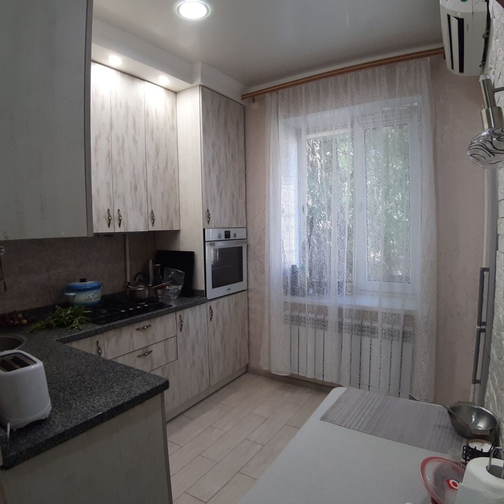 Площадь 59/41/7. Современный ремонт. Поменяны окна, радиаторы отопления. Два кондиционера. Встроенная кухня. На кухне,коридоре и с/у тёплый пол. Квартира находится в экологически чистом районе, рядом остановка, школа. В подвале есть собственная кладовка.