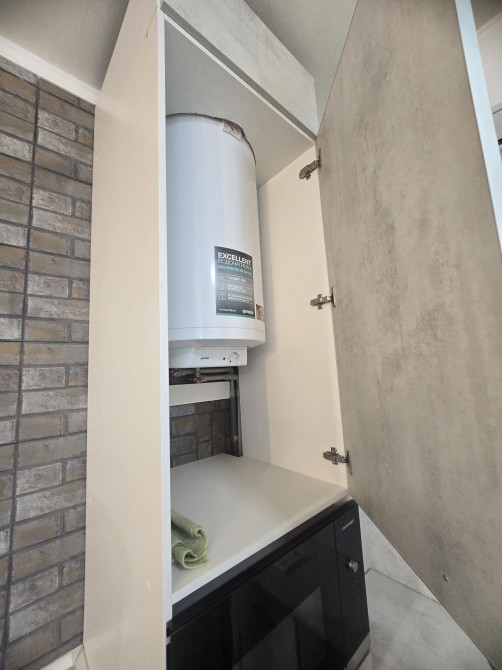 В квартире установлена новая кухня с профессиональной вытяжкой, есть посудомоечная машина, кондиционер, бойлер.