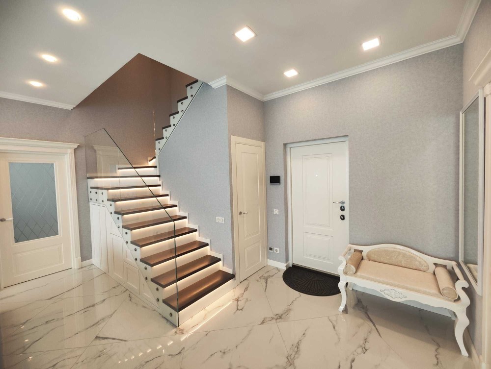 Підігрів підлог. Камін обрамлений мармуром. Сходи з підсвічуванням. Кондиціонери, бойлери.