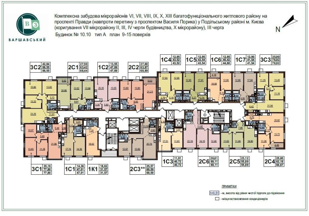 Площа 45/13/19м2. План 1C6. Поверх 10/16(23).