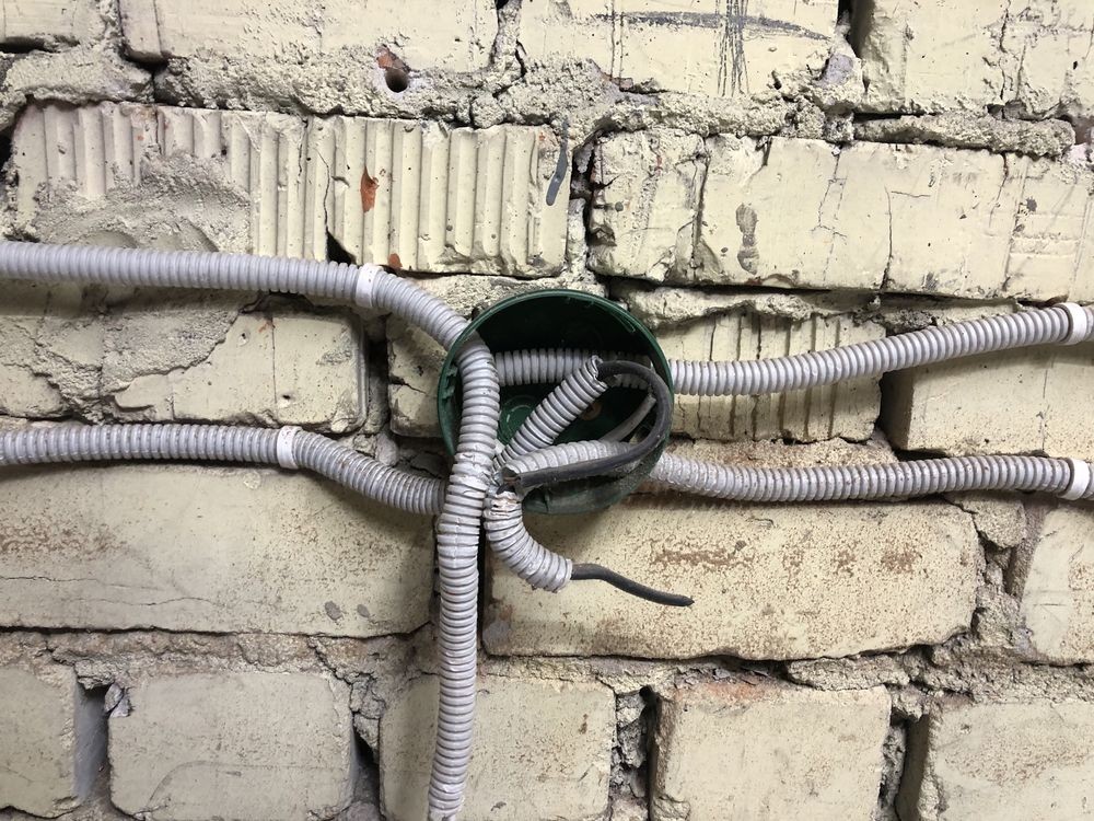По помещению электро разводка в гофре.