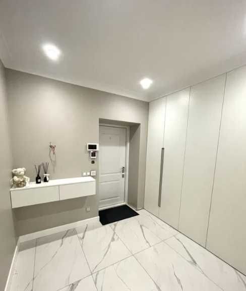 Продається дуже стильна і тепла 2-кімнатна квартира, в якій усе продумано до дрібниць. Дві окремі спальні та простора кухня-студія створюють відчуття простору і затишку. По всій квартирі тепла підлога, якісна італійська плитка та дорога паркетна дошка, кондиціонери **Mitsubishi** у кожній кімнаті, гарні міжкімнатні двері та надійні вхідні двері. У квартирі багато продуманих деталей: великий вбудований шкаф при вході, гардеробна, камін у вітальні, сучасна ванна з душовою зоною, а з головної спальні є вихід на скляний балкон. Квартира виглядає дорого і відчувається дуже комфортною для життя.