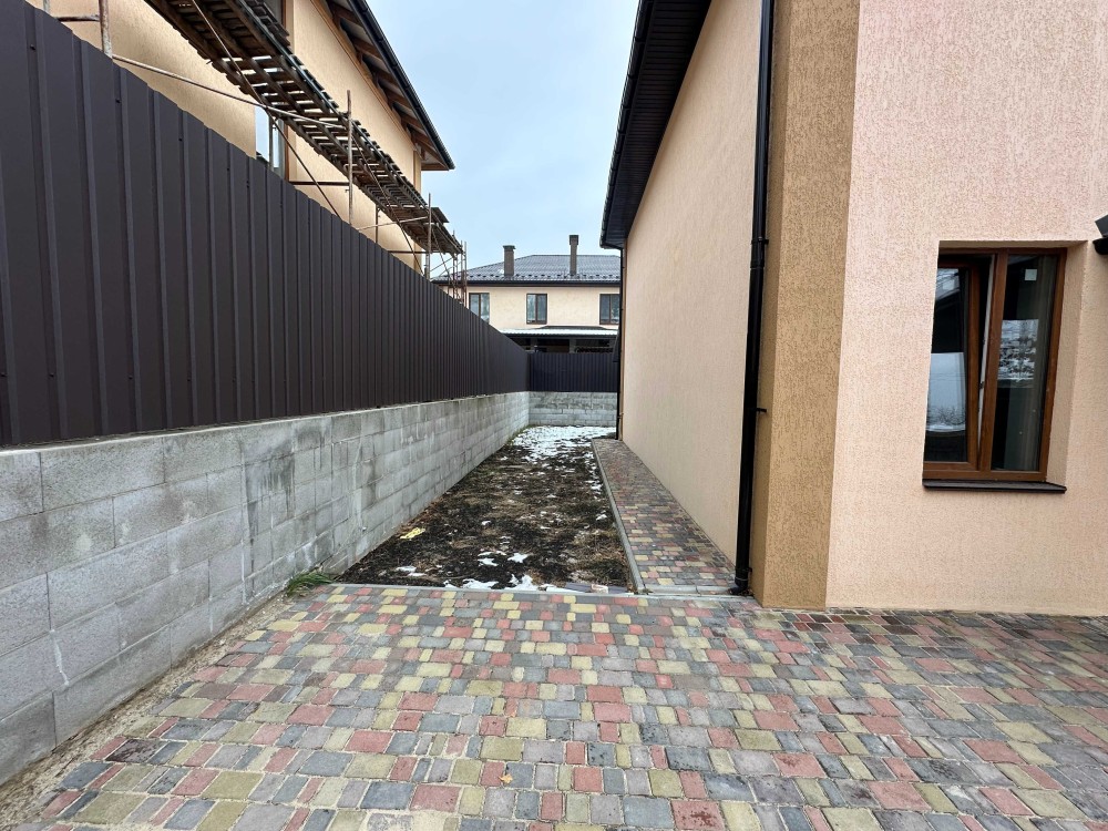 Продаються два будинки з червоної цегли, утеплені пінопластом (100 мм). Планування зручне: 4 кімнати (одна на першому поверсі), простора кухня-вітальня, 2 санвузли та гардероб. У будинку з гаражем є додатковий підвал. Територія облагороджена бруківкою та огороджена парканом.