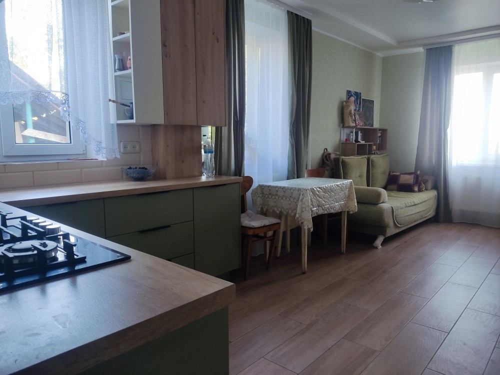 Кухня- студія - 18 кв.м, зал, спальня, санвузол, тамбур. Свіжий ремонт зроблений з високоякісних матеріалів.