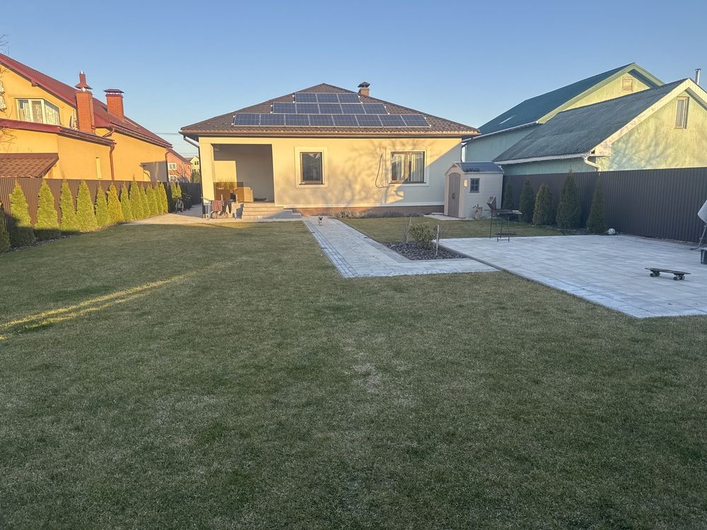 Будинок побудований з якісних матеріалів та має продумане планування. Просторі кімнати, велика кухня, санвузол та допоміжні приміщення забезпечують комфорт і зручність у повсякденному житті, також встановленні сонячні панелі з батареями для зберігання.