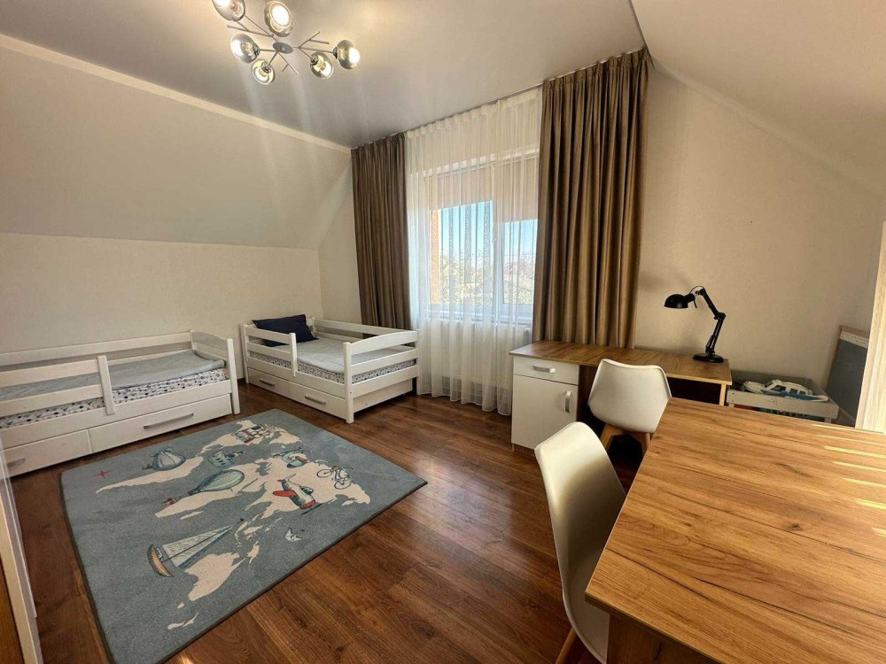 Терміновий продаж 2-о поверхового просторого і якісно-збудованого за індивідуальним архітектурним проектом, будинку площею 176 м² в с. Пухівка в Броварському р-ні. Будинок розташований в престижному закритому товаристві з охороною. Будинок побудований з червоної цегли, утеплений мінеральною ватою ватой ROCKWOLL 80 мм, фасад з цегли Фагот, кровля - фінська бітумна черепиця "katepal", двокамерні вікна "Века" з автоматичними захисними ролетами кольору золотий дуб, декоративна штукатурка, іспанская плитка, дуб паркет-дошка, імпортна сантехніка. Ділянка розміром 14 соток має правильну прямокутну форму, за проектом розміщено індивідуальний житловий 2-о поверховий будинок та гараж на 2 авто (53м2). Планування будинку забезпечує комфортне проживання великої родини. Планування: 5 спален, кухня, вітальня, 2 с/в. Якісний ремонт, дерев'яні меблі, кухонний гарнітур з натурального дубу. Під’їзд до будинка асфальтованою освітленою дорогою, глухий кут вулиці з виходом на піщаний пляж р. Десна, поруч ліс, озера, ресторан, магазин, зупинка громадського транспорту та бази відпочинку. Живописне, красиве місце, чисте повітря, для постійного проживання, все навколо забудовано. Інженерія та комунікації: Електрика — Виділена лінія електроенергії на 20кВт. • Газовый двоконтурний котел • Електрокотел • Діючий камін • Бойлер • Система очищення води • Кондиціонери • Підключено інтернет • Автоматичні ролети на вікнах. • Скважина • Каналізація — два переливні дренажні септики • Автополив • Сигналізація та відеоспостереження • Автоматичні ворота. Будинок продається з меблями та технікою. 225000 у. о. Можливий торг!