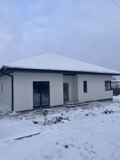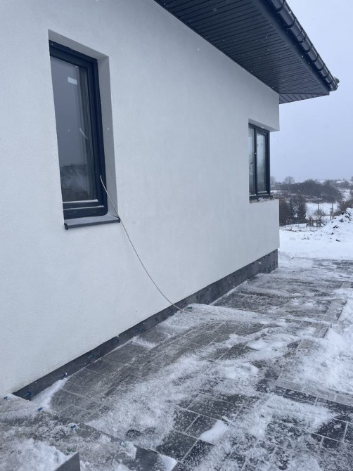 Будинок виконаний у мінімалістичному європейському стилі: світлий фасад, лаконічні лінії, якісні вікна з великим склінням, що наповнюють оселю природним світлом. Одноповерхове планування — ідеальне рішення для комфортного життя всієї родини.