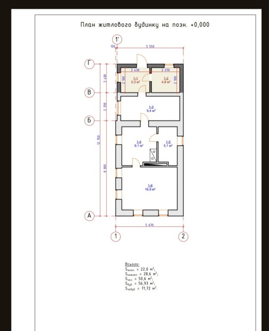 • Общая площадь 50 м2