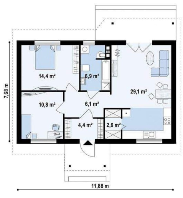 • Общая площадь 90 м2