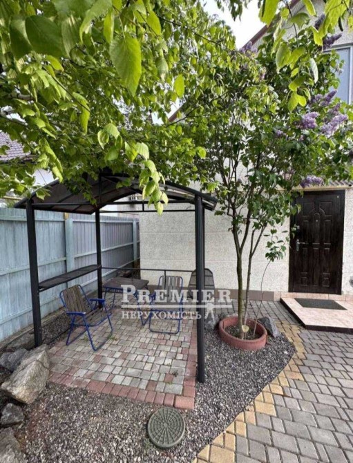 - Упорядкована, з альтанкою, гойдалками, столом та стільцями. На ділянці ростуть плодові дерева та кущі, включаючи інжир.