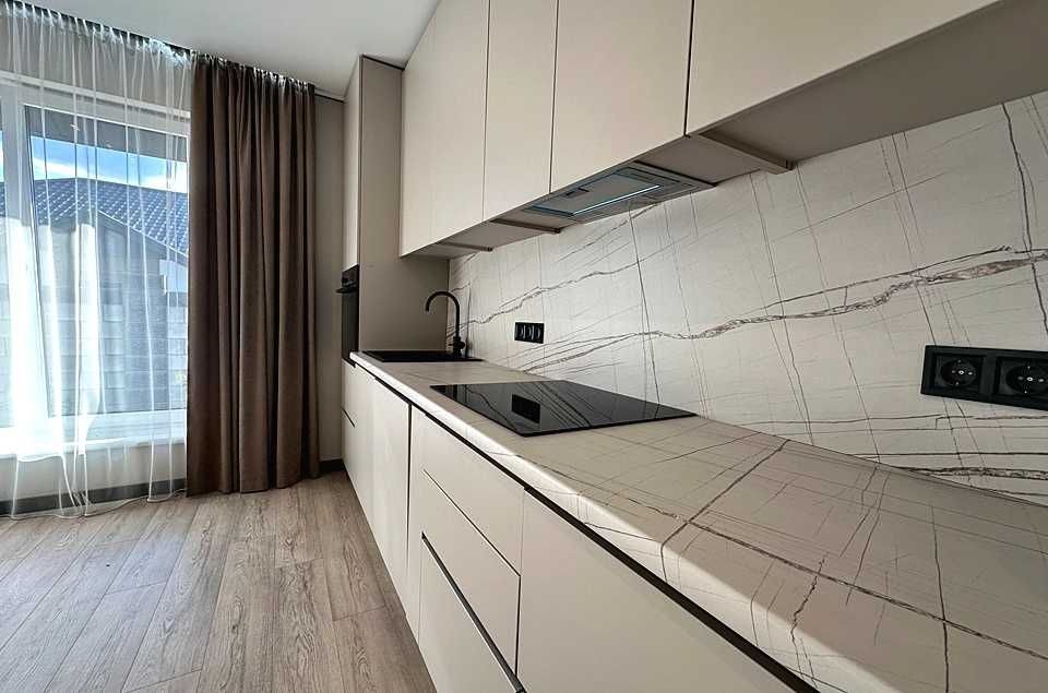 Велика світла кухня вітальня з виходом на терасу