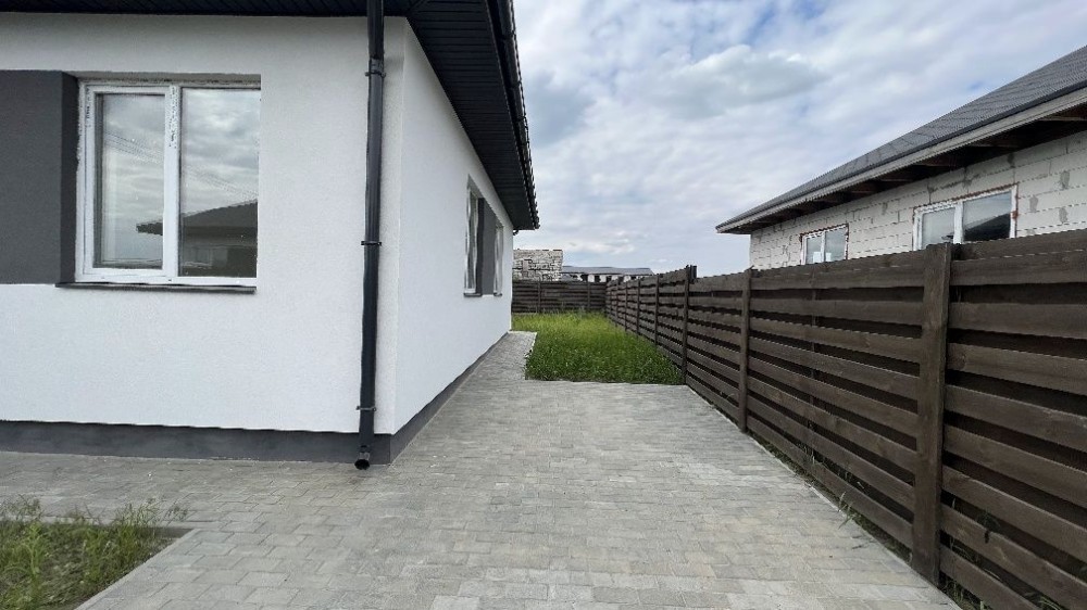 Продажа, Ірпінь, вул. Радужна, одноповерховий житловий будинок, площею 92 кв.м. + тераса 8 кв.м., земельна ділянка 4,2 сотки. Комунікаціі: Електрика – 11 квт, септик – 6 кубів, скважина – глибина 40 м. Побудовано з газоблоку , утеплення пінопласт 100 мм, фасад будинку – декоративна штукатурка. Дах – бітумна черепиця. Вікна – WDS – євро 70. Чистова штукатурка сиін. Огорожа, ворота, хвіртка. Ціна 76000у.о.