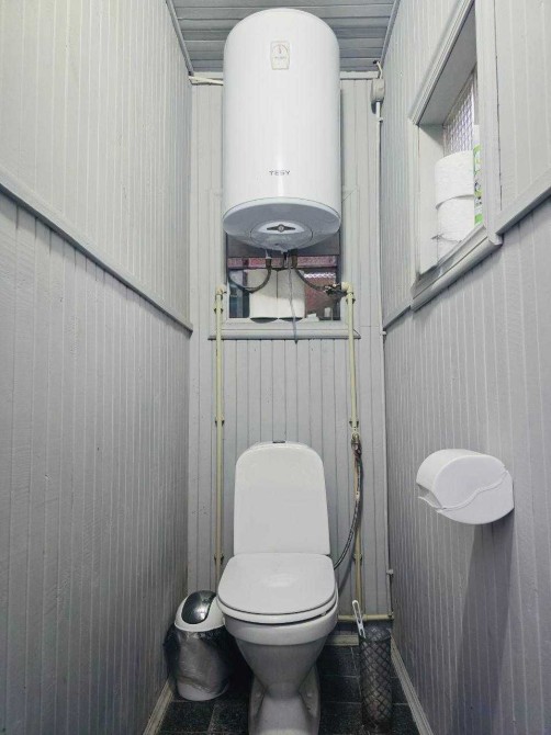 санвузол та душ — на вулиці (у будинку вже підготовлені виводи та місце для облаштування внутрішніх зручностей).