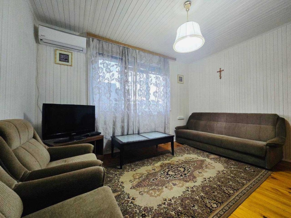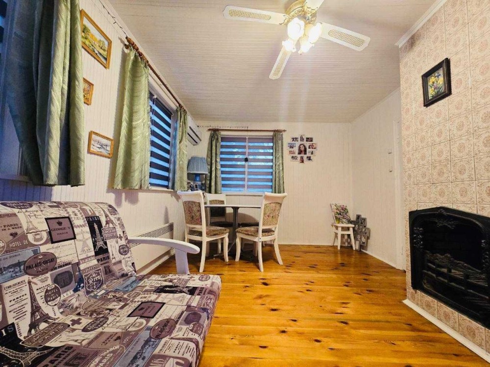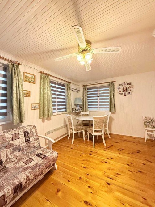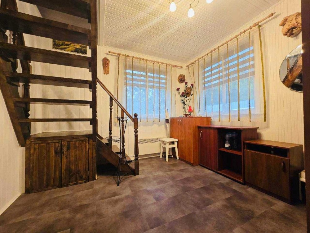 Будинок утеплений стіродоном (4 см) та обшитий блокхаусом, що забезпечує теплоізоляцію та естетичний вигляд. У приміщенні залишаються всі меблі та побутова техніка, необхідні для комфортного проживання.