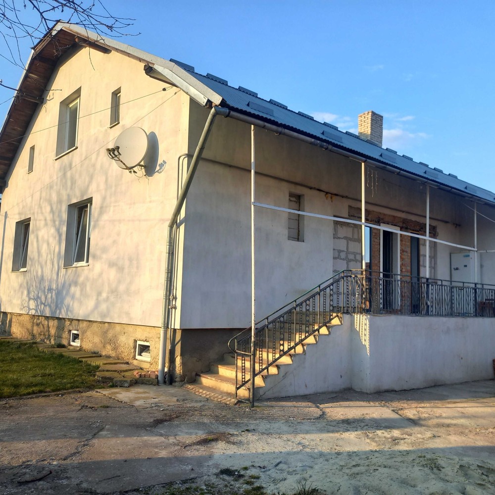 Цегляний одноповерховий утеплений. Перекриття з/б моноліт. Критий металопрофілем. Чотири кімнати. Стяжка. Стіни гіпсовані. Вікна – пластик. Санвузол роздільний. Опалення відсутнє. Загальна площа – 94,1 кв.м. Житлова площа – 74,9 кв.м. Площа кухні – 15,3 кв.м. підігрів підлоги. Підвал – 38 кв.м. Літня кухня, гараж. Земля – 6 сот. ціна – 62 000 у.о. Т о р г.