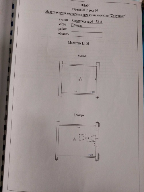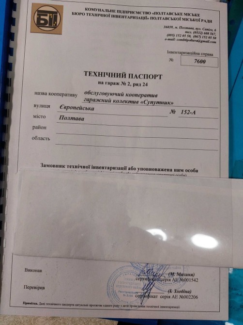 Продам свій підземний гараж у багатоярусному гаражному комплексі з адміністративними приміщеннями адресую м. Черкаси, вул. Праведниці Шулежко (Пушкіна) 100/1. Це на розі вулиць Пушкіна та Гоголя (Google map 49.448872, 32.048071). Його конкурентні переваги: + продаж від власника, без комісії, документи на руках; + це повноцінний капітальний підземний гараж (фундамент – бетонні блоки, стіни – цегла, перекриття – залізобетон, підлога – тротуарна бруківка поверх бетону), тобто Ваш авто і крам будуть в повній безпеці, як в бомбосховищі; + територія комплексу закритого типу, охорона на в’їзді 24/7 + відеоспостереження, є протипожежна сигналізація; + взимку мінімальна температура +5⁰, влітку максимальна +25⁰, і це без утеплених воріт. Працює пасивна витяжка, її достатньо щоб вологе висихало; + пристойні розміри (довжина – 5.86 м, ширина – 3.28 м, висота – 2.5 м, площа – 19.2 м2). Увага! Залізні ворота на всю ширину гаража. Поряд з авто можна розташувати стелажі; + до гаража є зручні 2 окремі заїзди (головний - через пост охорони та додатковий – через зовнішні ворота з пультом); + стабілізована електромережа стандартної потужності, 2 розетки та 2 стельові світильники. Індивідуальний електролічильник на щитовій, яка знаходиться через один гараж. Якщо Вам потрібен надпотужний ввід для чогось, то прокласти окремий силовий кабель можна геть без складнощів; + на відстані 200-300 м від кооперативу знаходяться зупинки громадського транспорту, центральний проспект міста, торгівельні центри тощо; + гараж після будівельників як є (тротуарна бруківка на бетоні, стіни первинно потиньковані), з фото це видно. Ви зможете зробити все на свій смак, нічого не переробляючи! + пульта від воріт ДОДАТКОВОГО зовнішнього в’їзду можна придбати у голови кооперативу. Ціна – 18500 $. Нотаріальні витрати та податки з заявленої вартості, час огляду та інші питання за домовленістю. Телефонуйте та купуйте, гараж серйозний: +38 067 470 3530 Олег.