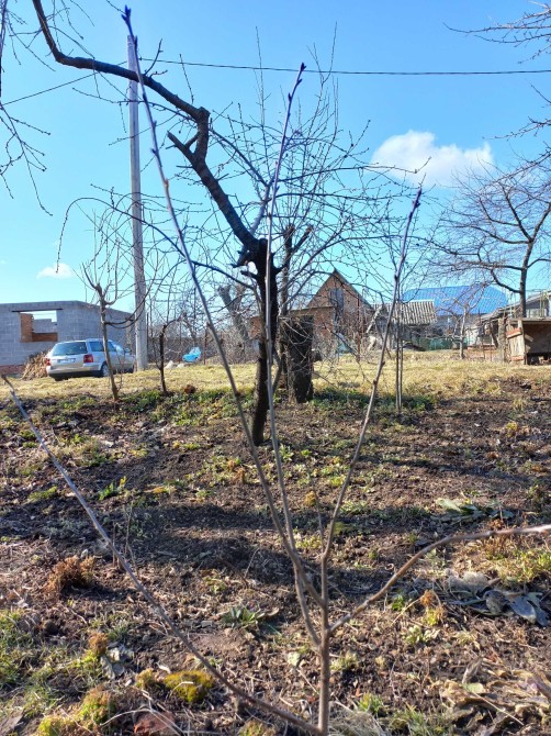 Ділянка чудової рівної форми. Є фруктові дерева і кущі.