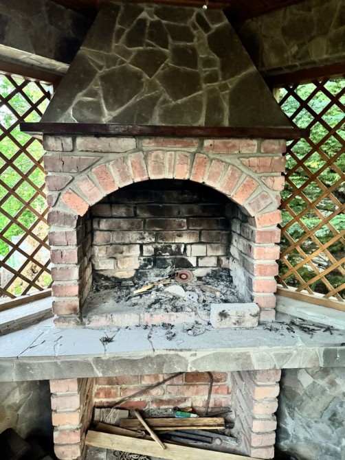 Скважина ,глубина 15 метров , , разводка воды по участку под землёй, зелёные насаждения, беседка с барбекю , помещение для хранения инструментов , небольшая постройка для отдыха с погребом внутри. 2/4 м. Тротуарная плитка фирмы «золотой мандарин».