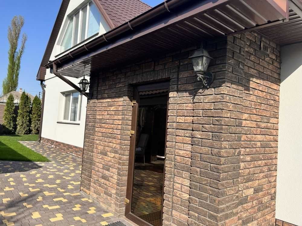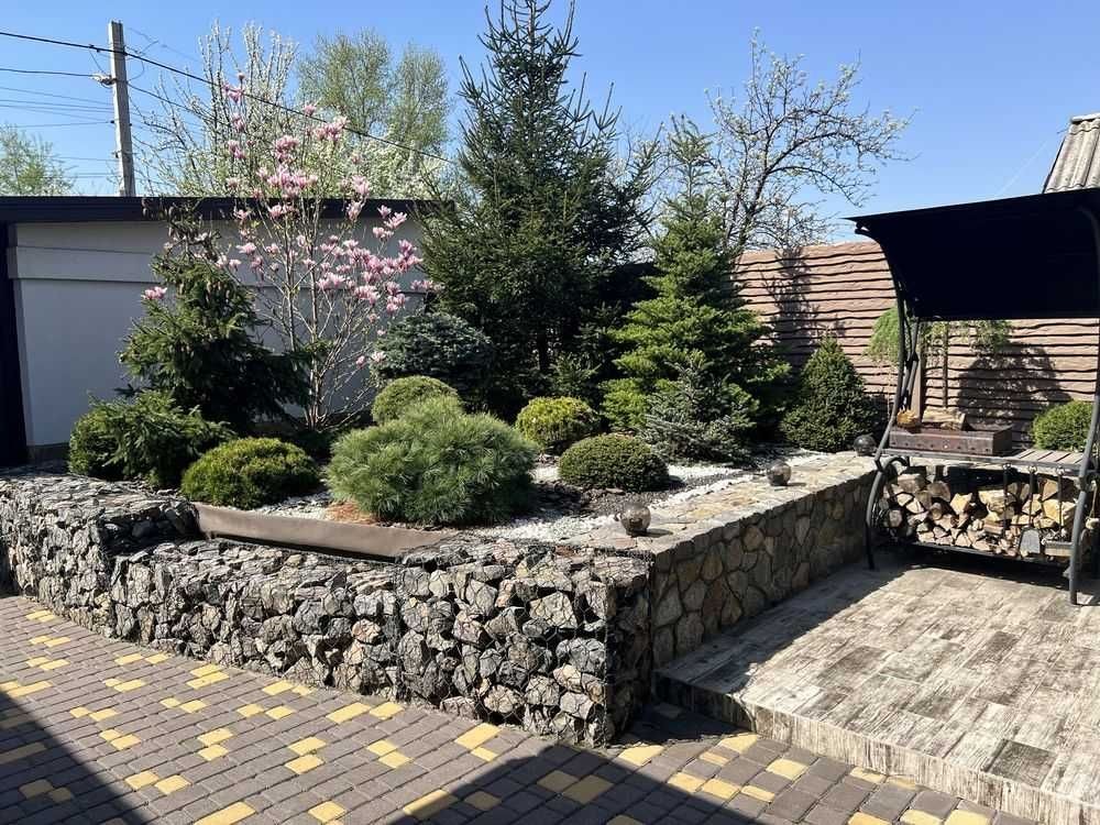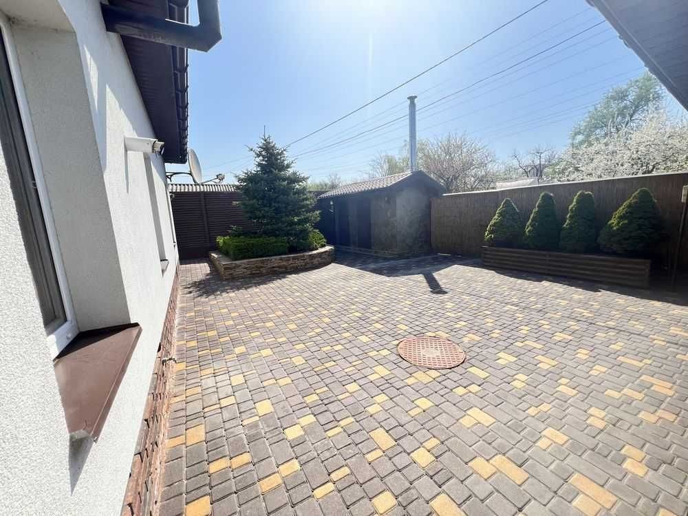 Продам очень хороший, добротный, грамотно спланированный дом. Дом построен из дорогих и качественных европейских материалов! Планировка участка 6,1 сотки: 2 гаража, котельная, уличная уборная, капитальная беседка, вольер. Планировка дома: 1 эт прихожая, кухня, 3 спальни, зал, 2 гардеробные, кладовка и санузел 2 эт хозяйская спальня, балкон и санузел. Все комнаты большие, не узкие. Дом построен на участке в 6.1 соток. Имеет 3 вида отопления: газовый двухконтурный котел, твердотопливный котел в синхроне с газовым и электрические теплые полы. Первый этаж теплые полы и водяные и электрические, в спальнях радиаторы. Если не будет газа то есть еще бойлер. Также имеется 3 скважины: одна на полив, вторая в дом, третья законсервированна. Стоит хорошая система очистки воды на весь дом, в доме дополнительно стоит система обратного осмоса. На участке шикарный ландшафтный дизайн, высажены редкие экзотические растения, газон, все хвойное, так что листья убирать не нужно. Абсолютно под каждым растением автоматический полив. Также на всем участке сделана система отвода воды. Беседка оснащена холодильником и микроволновкой, есть вода и канализация. Вольер для собак со своей системой смыва, отдельно канализационная труба, вместе с автоматическим поливом промывается и сам вольер. Установлена беспроводная сигнализация аякс, видеонаблюдение, видеодомофон, оптоволоконный интернет, автоматическое уличное освещение+доп освещение. Перед домом имеется фруктовый сад. Все соседи отличные, так как улица тупиковая, чужие не ездят и не ходят, в пешей 5-10 минутной доступности АТБ, аптека, укр и новая почта, остановка и другие магазины. Вся улица освещается, дорога хорошая.