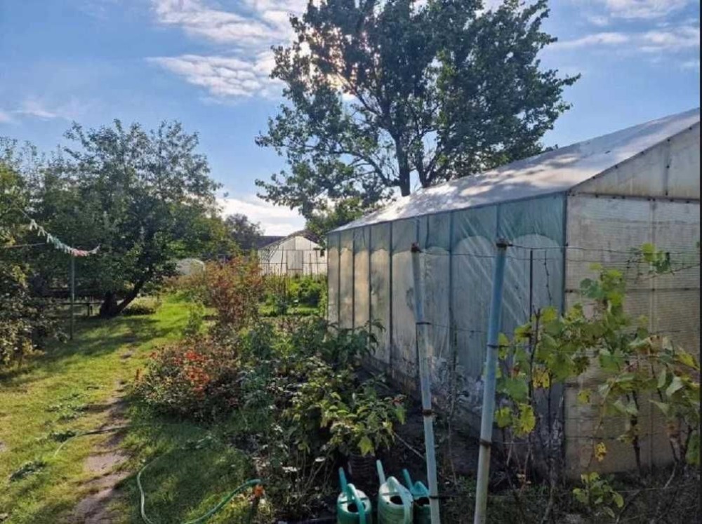 Участок 10 соток, много декоративных растений, установлена каркасная теплица.