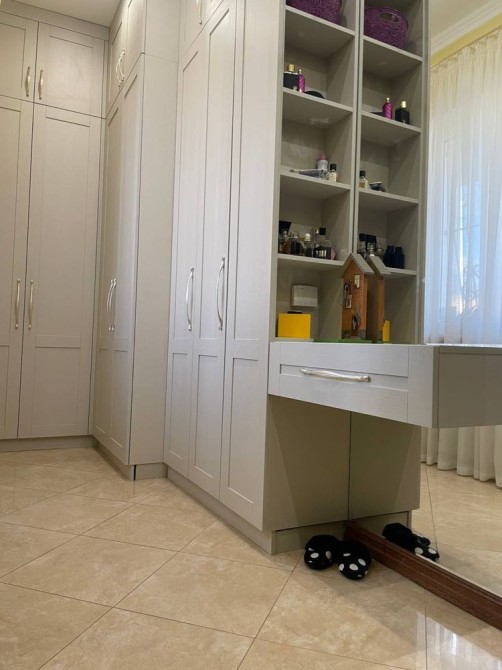 2 поверхи: 1-й поверх - гостьова кімната, велика кухня-вітальня, санвузол; 2-й поверх - 4 спальні, гардеробна, 2 санвузли.