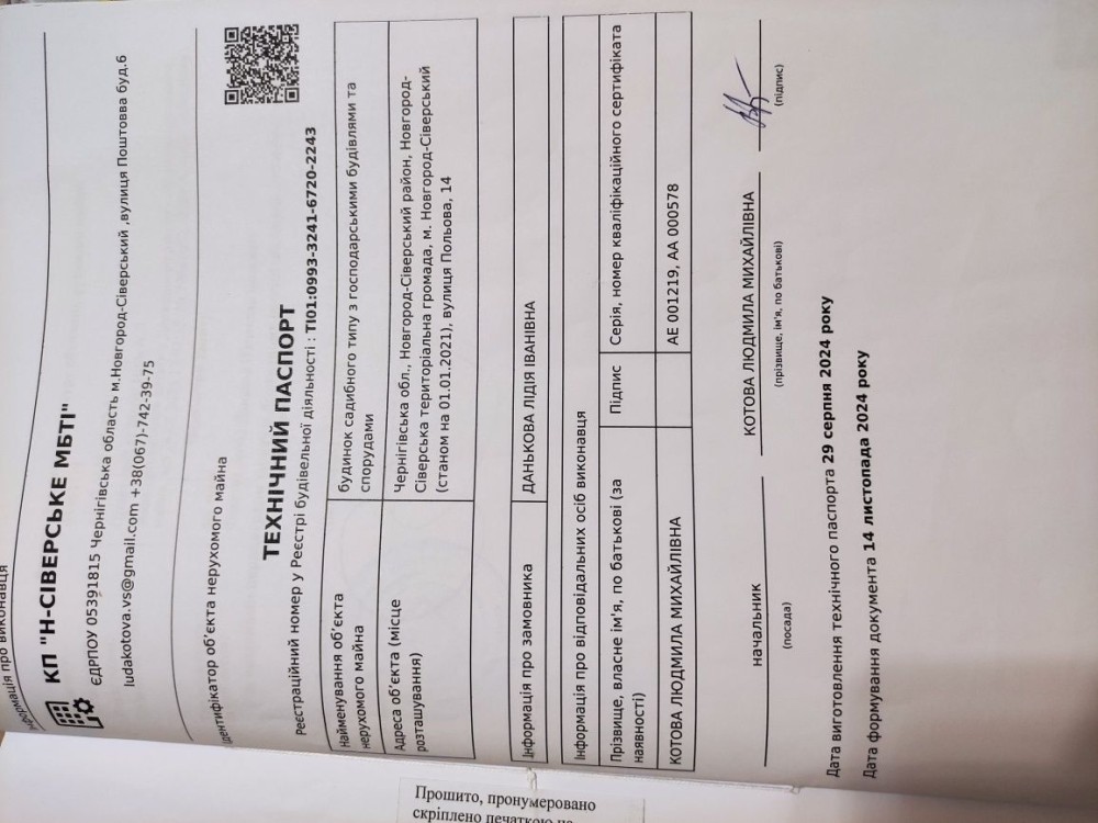 Продається новий індивідуальний житловий будинок котеджного типу загальною площею 131 м.кв. під чистове оздоблення, розташований в селі Крячки Фастівського (колишнього Васильківського) району Київської області на території нового житлового масиву із сучасною котеджною забудовою, що перебуває на відстані 20 км від станції метро «Теремки» міста Києва та за 1,5 км від міста Васильків. Житловий будинок складається з першого та мансардного поверхів. Загальна площа будинку із допоміжними спорудами становить 173,1 м.кв., з яких: а) площа будинку ‒ 131,0 м.кв., у тому числі житлова (основна) ‒ 94,1 м.кв. та допоміжна (підсобна) ‒ 39,6 м.кв.; б) площа тераси – 23,1 м.кв.; в) площа трьох балконів – 13,4 м.кв. (5,8 + 4,9 +2,7 м.кв.); площа ґанку – 5,6 м.кв. Котедж вміщує в собі 5 (п’ять) доволі просторих кімнат, 2 (два) санвузли (на кожному із поверхів), 1 (одне) технічне приміщення (котельня або бойлерна), 2 (два) коридори, 1 (одну) вітальню із виділеною еркером обідньою зоною, що поєднана з кухнею. Із вітальні є окремий вихід на велику терасу, з якої відкривається затишний вигляд на внутрішній двір. Кожна з трьох мансардних кімнат має окремий вихід на балкон. Над усією площею мансардного поверху розташоване містке горищне приміщення. Будинок приєднаний до електропостачання потужністю ‒ 12кВт (3 окремих фази). Має свердловину глибиною 55 метрів із фактичним дебітом (спроможною потужністю) ‒ 2,5 м.куб./год. та каналізацію септик з переливом на 11 м.куб. На усій площі першого (крім житлової кімнати) та у санвузлі мансардного поверхів встановлена система водяної теплої підлоги фірми «Rehau». По котеджу розведені: опалення, водопостачання і каналізація. В будинку передбачена можливість встановлення камінної топки, а також приєднання котеджу до газорозподільної мережі та всесвітньої мережі Інтернет. Індивідуальний житловий будинок розташований на земельній ділянці площею 0,075га з цільовим призначенням – (02.01) для будівництва і обслуговування житлового будинку, господарських будівель і споруд (присадибна ділянка). Під житловою забудовою перебуває 0,0115га земельної ділянки, решта 0,0635га займає просторий двір. Кадастровий номер земельної ділянки: 3221487004:03:006:0328. Земельна ділянка огороджена парканом із монолітного фундаменту, що опорядковане металевим штахетом із обох боків та металевим профілем з тильної та фасадної сторін. Заїзд у двір має відкатні ворота. На території двору (перед будинком) облаштоване загальне паркомісце на 2 (два) автомобіля, решта двору засіяне газонною травою. Котедж побудований з якісних матеріалів за проектом європейського архітектурного бюро. Так, фундамент, перекриття та міжповерхові сходи ‒ монолітні. Стіни будинку збудовані з газоблоку AEROC D500 (товщиною 300мм), що утеплений пінопластом 100мм. Внутрішні міжкімнатні перегородки виконані із цегли. Дах ‒ металочерепиця фірми «Ruukki», що утеплений мінераловатними плитами загальною товщиною 200мм. Вікна вироблені з профілю фірми «Rehau» серії EVRO 70. Фасад котеджу покритий акриловою штукатуркою. Будинок за усім периметром має вимощення шириною 0,9 метри, що облаштоване фігурними елементами мощення (ФЕМ). Зручне ергономічне планування будинку, а також наявність високих стель обох поверхів дає можливість відчувати себе вільно і затишно. Завдяки правильному утепленню зовнішніх стін будинку, у ньому прохолодно влітку та тепло вз